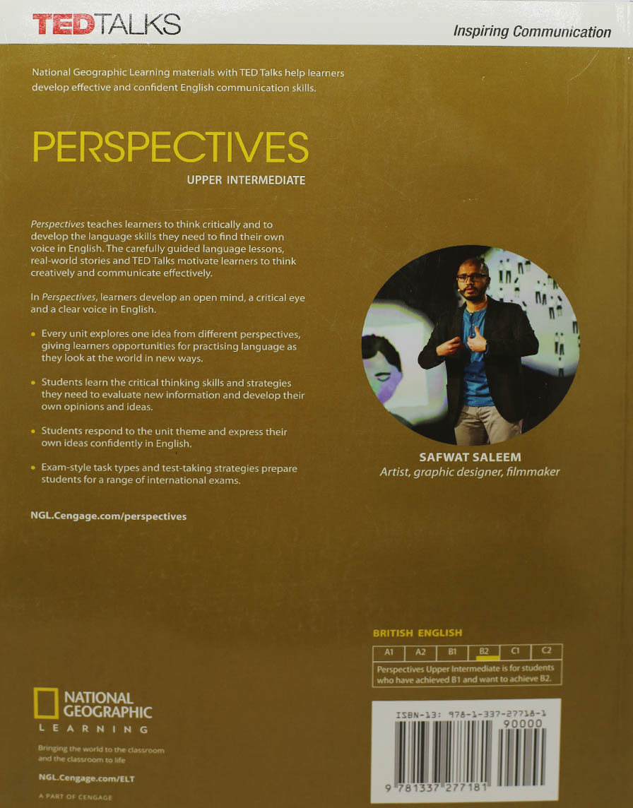 Perspectives is a four-skills series in British English or American English that teaches learners to think critically and to develop the language skills they need to find their own voice in English. The carefully-guided language lessons, real-world stories, and TED Talks motivate learners to think creatively and communicate effectively.