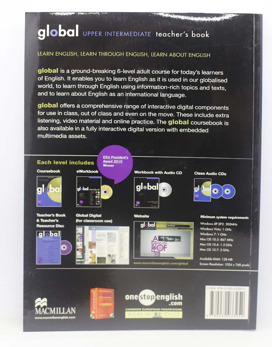 "Global" is a new six-level general English course for adult learners. It is an information-rich course, sophisticated in both presentation and approach. It has international appeal, combining challenging content, intelligent topics and cross-cultural awareness. It features none of the celebrity-driven lifestyle content often found in typical general English courses for adults. "The Global" approach is fully aware of the needs of today's learners, and places an emphasis on effective communication in English between both native and non-native speakers. "Global" helps users to learn English, to learn about English and to learn through English, and is the ideal course for students who want to communicate in a global environment.